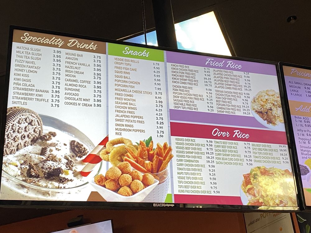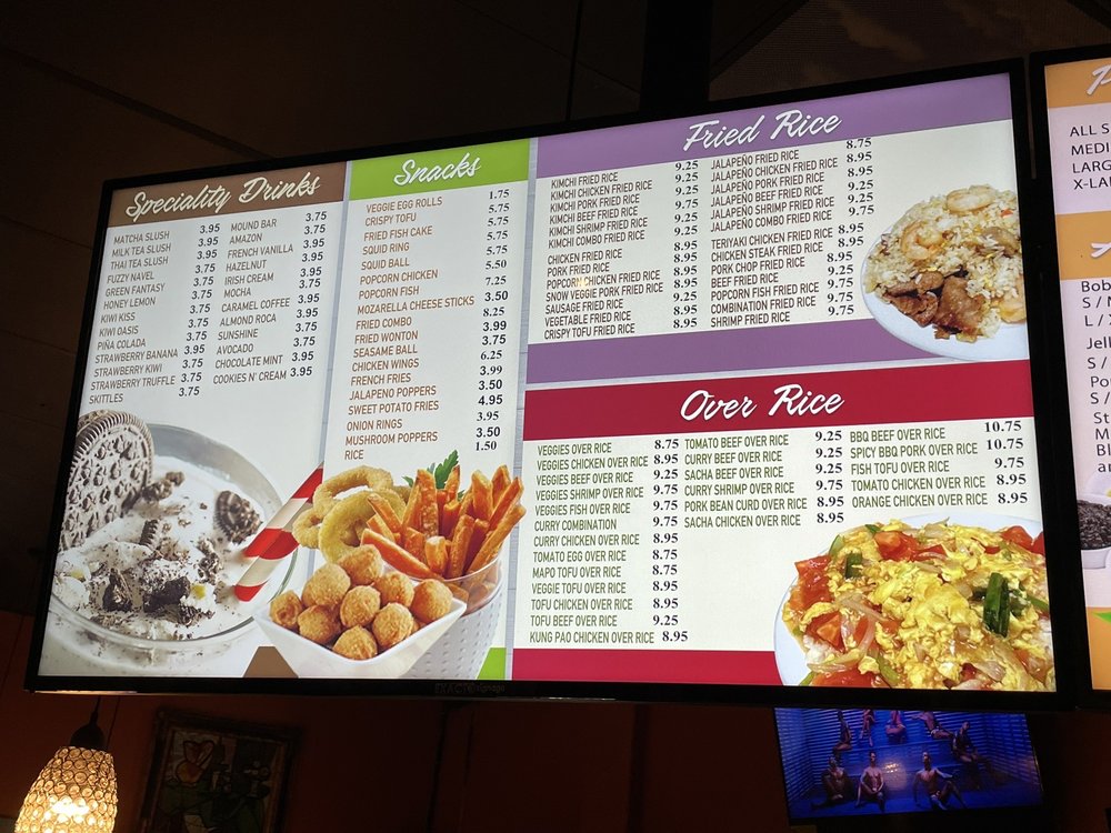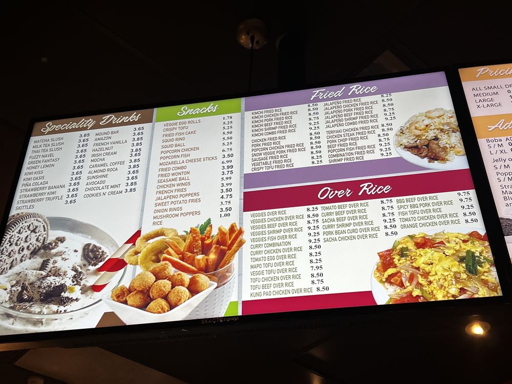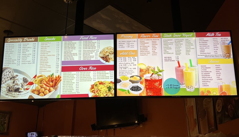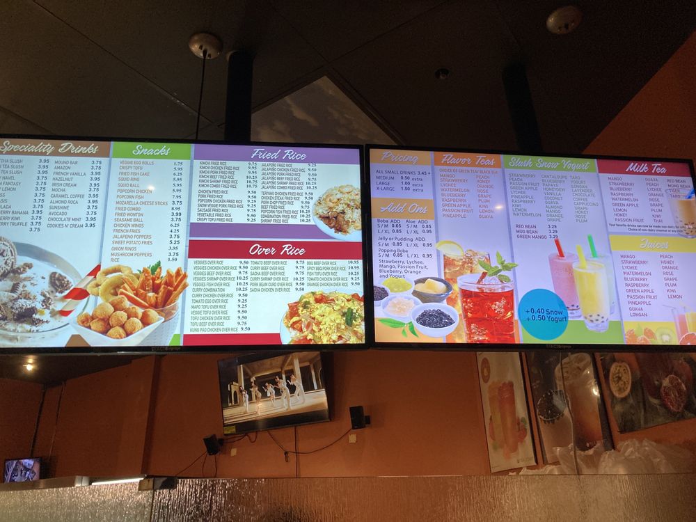 Introducing the menu at Boba Cafe in Riverside, CA, where Asian fusion meets bubble tea. Offering a variety of options from soups like vegetable and wonton to snacks such as popcorn chicken and fried tofu. Indulge in flavorful fried rice choices like kimchi, chicken, and snow vegetable pork. Customers rave about the delicious beef noodles and the soft, warm boba drinks. The reasonable pricing and tasty fruit teas make this spot a go-to for a quick bite or hangout. Don't miss out on the customer-favorite popcorn fish fried rice and lychee snow. With a welcoming atmosphere and friendly service, Boba Cafe is a must-visit for a satisfying dining experience.